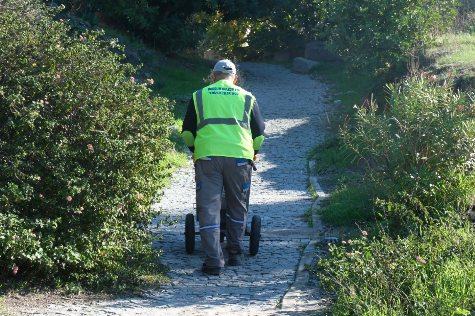 Bodrum Belediyesi ekiplerince el arabalarına yapılan eklentilerle pratik temizlik araçları oluşturuluyor ve plastik bidonlar, atık ahşaplarla birleştirilerek faraş haline getiriliyor. Tabanları çürümüş çöp konteynerleri bakım ve onarımdan geçirilerek yeniden hizmete sunuluyor; 2025 yılında toplam bin 349 konteyner onarıldı.